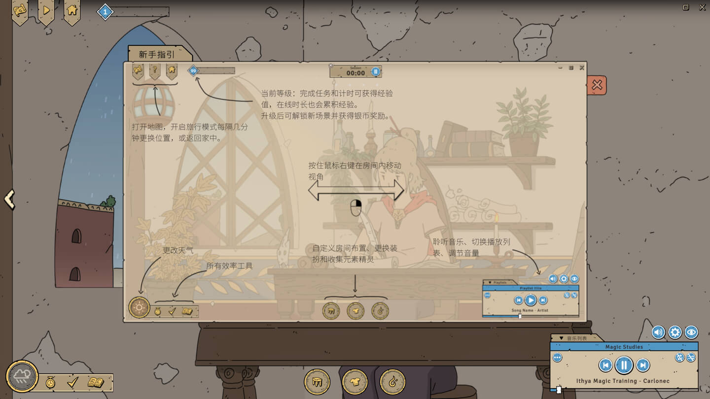 依据心情调整环境意境。选择白昼、夜晚或雨天,搭配恰到好处的环境音效与轻柔的奇幻音乐,让心境随着场景徐徐变换。